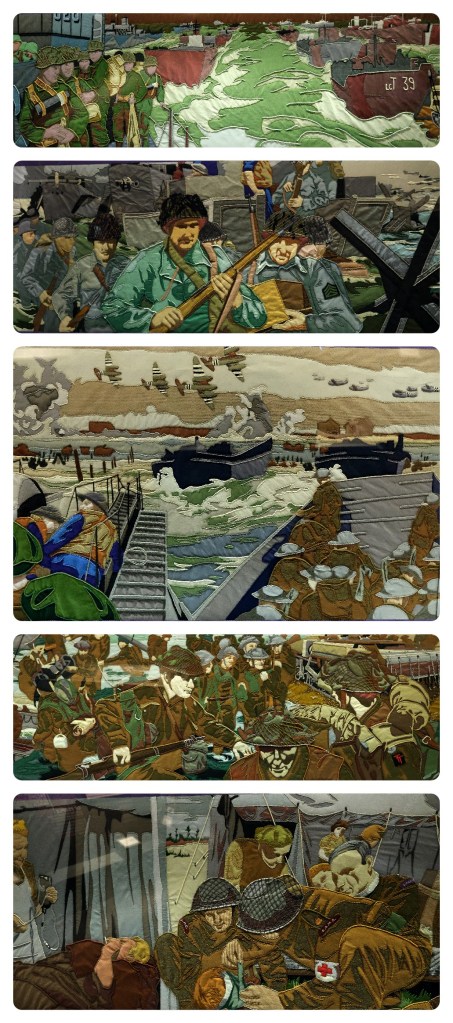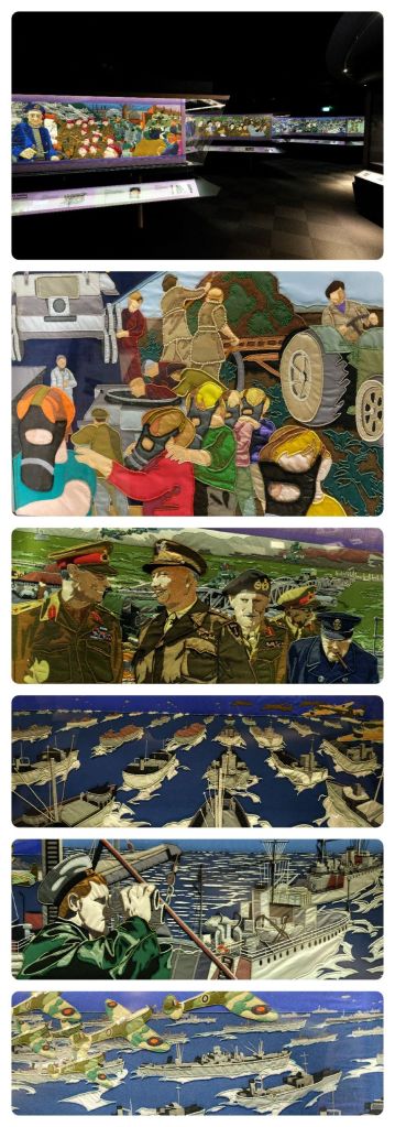 The Overlord Embroidery tells the story of D-Day and the Battle of Normandy in 34 hand-stitched panels based on photographs taken at the time. It has a total length of 83 metres.