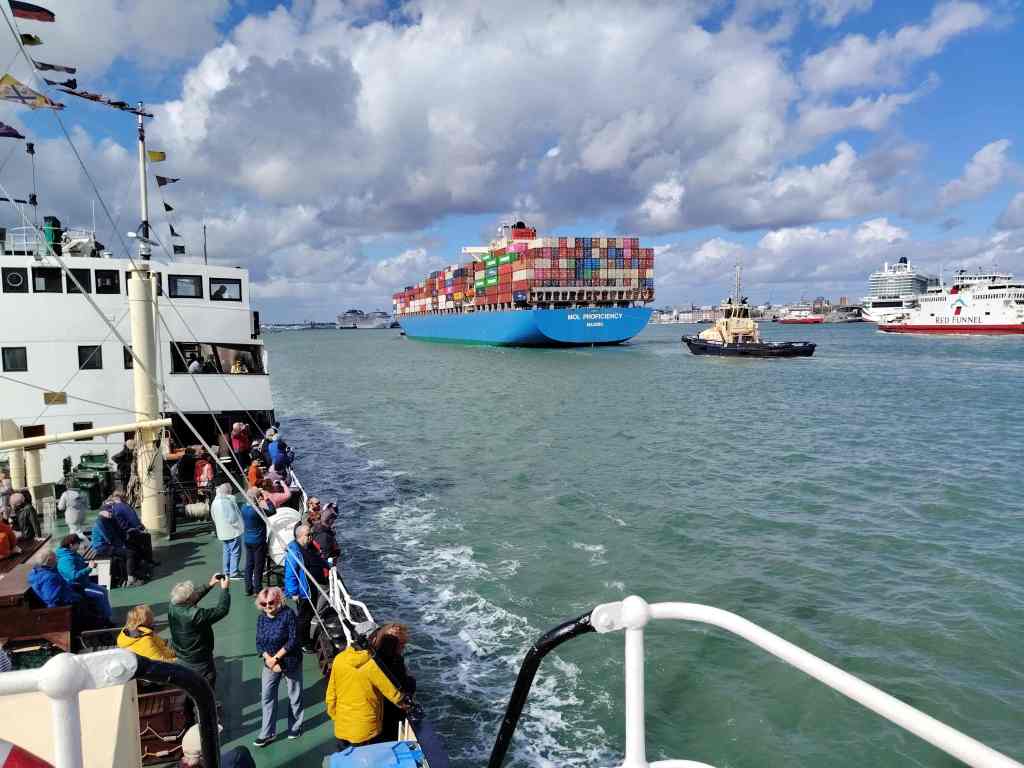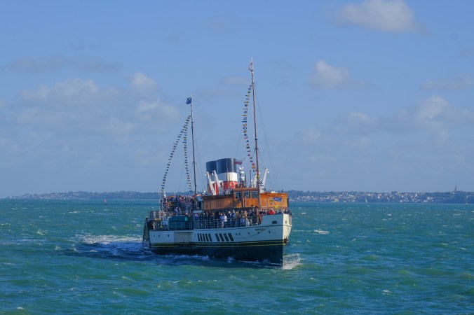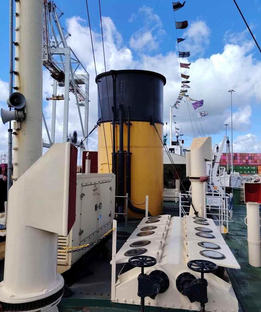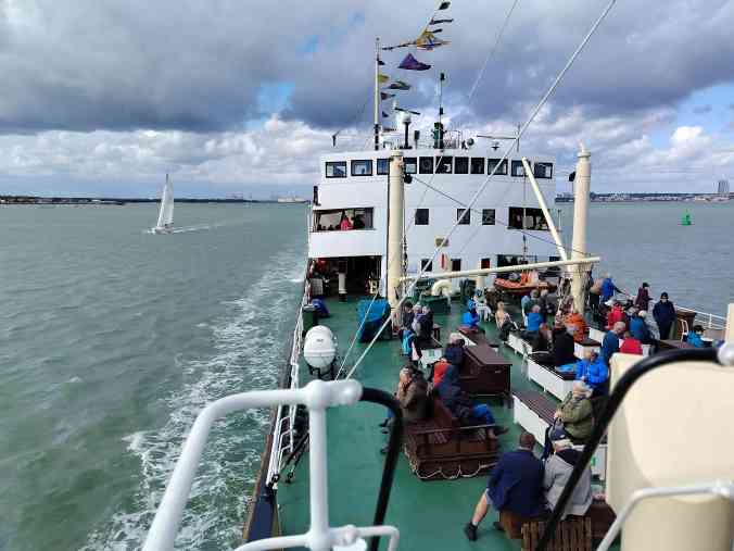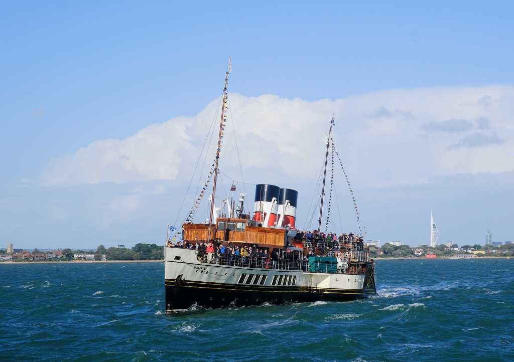Back in the Spring, we booked a trip on the SS Shieldhall yesterday, the weather held, and the promised rain held off. We had a 7-hour trip – 2025 is set to be a special year for Shieldhall, built in 1955, as she celebrates her 70th birthday. SS Shieldhall is the largest working steamship in Britain. The trip was down Southampton Water and into the Solent. We met up with the historic Paddle Steamer Waverley just off the Isle of Wight. PS Waverley was built in 1946 and is the last seagoing passenger-carrying paddle steamer in the world. She is also steam-powered. Both ships are on the National Historic Fleet Register. In the past, I have sailed on both these ships, but it is always a treat to step back in time and travel at a slower pace.