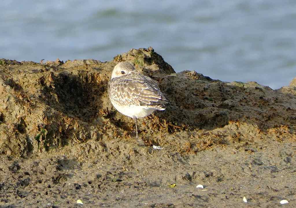 The name derives from Old English sand-yrðling, “sand-ploughman”. These little birds are in the Sandpiper family they are a passage migrant spending the winter on our coast before going north to their breeding grounds their Arctic breeding grounds.