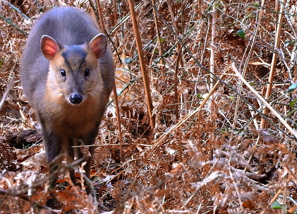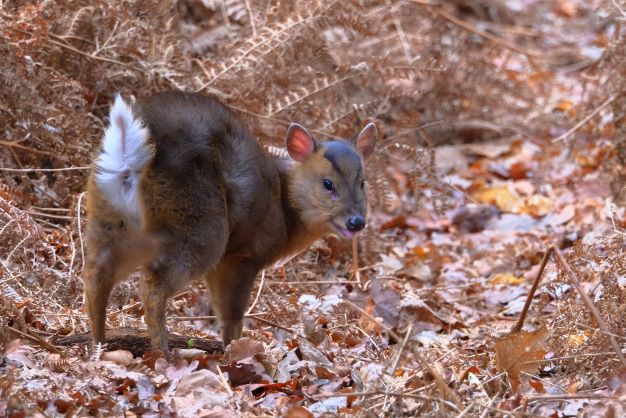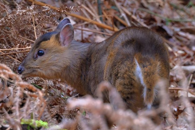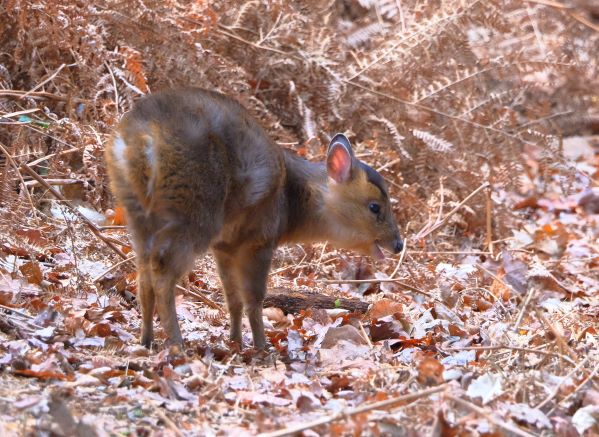 Having recorded some of these small deer on our trail cameras in the past year today we were lucky enough to bump into this lone Muntjac while looking for fallow deer in the New Forest this morning. These shy deer are small and are only about the size of a small dog.