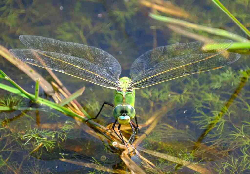 Another hot weather walk in the New Forest this morning found us following a small stream on the flat which helped us keep cool. There were many Dragonflies – Emperor Dragonflies were “dipping”. An action where they lay their eggs.